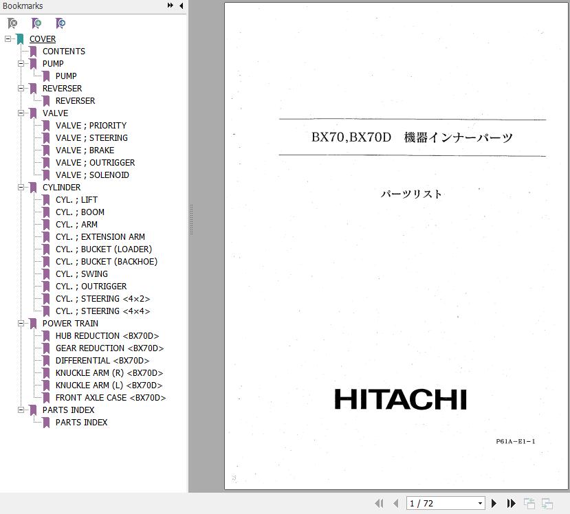 Hitachi BX70 BX70D Parts List P61B-1-1 EN JP 254 Pages