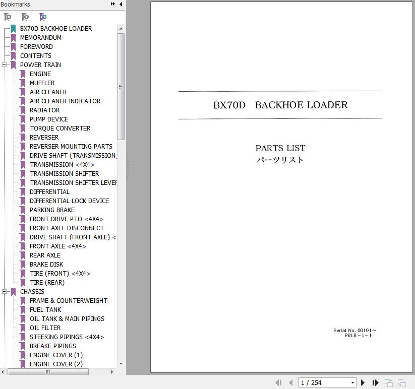 The Bookmarks of Hitachi BX70 BX70D Backhoe Loader Parts List:
