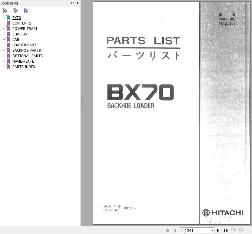 Hitachi BX70 Part List P61A-1-1 EN JP 241 pages