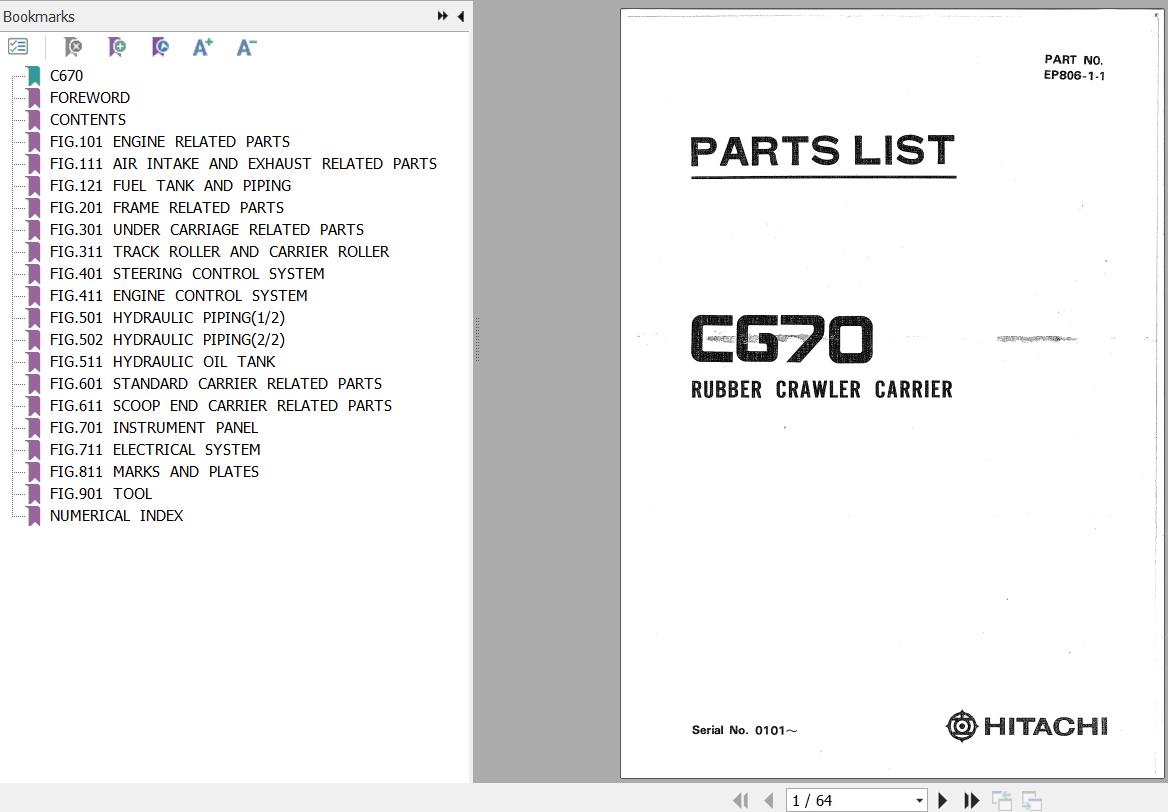 The Bookmarks of Hitachi CG70 Parts Catalog: