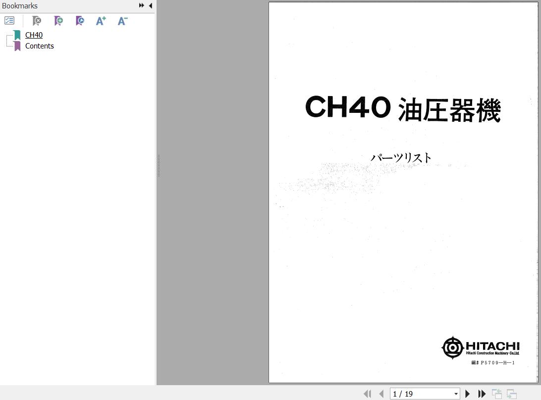 Hitachi CH40 Equipment Components Parts Catalog P5709-H-1