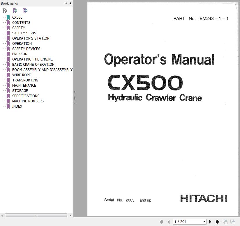 The Bookmarks of Hitachi CX500 Assembling And Disassembling Operators Manual: