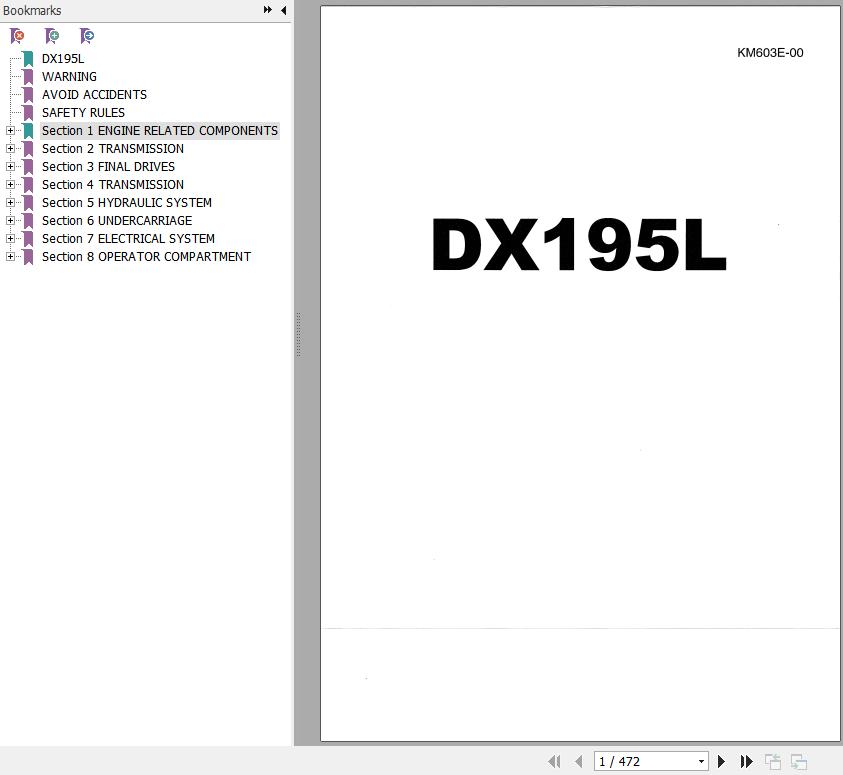 The Bookmarks of Hitachi DX195L Bulldozer Service Manual: