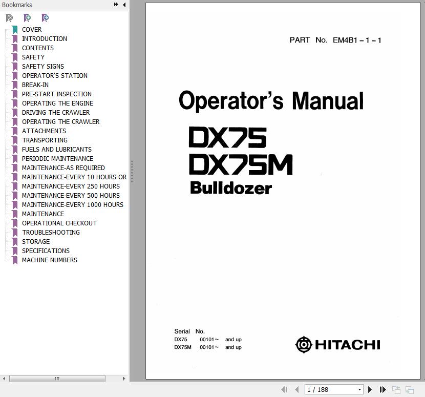 Hitachi DX75 DX75M Operator's Manual EM4B1-1-1