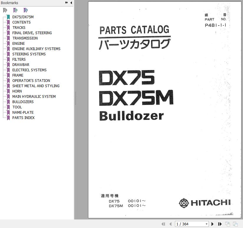 The Bookmarks of Hitachi DX75 DX75M Bulldozer Parts Catalog: