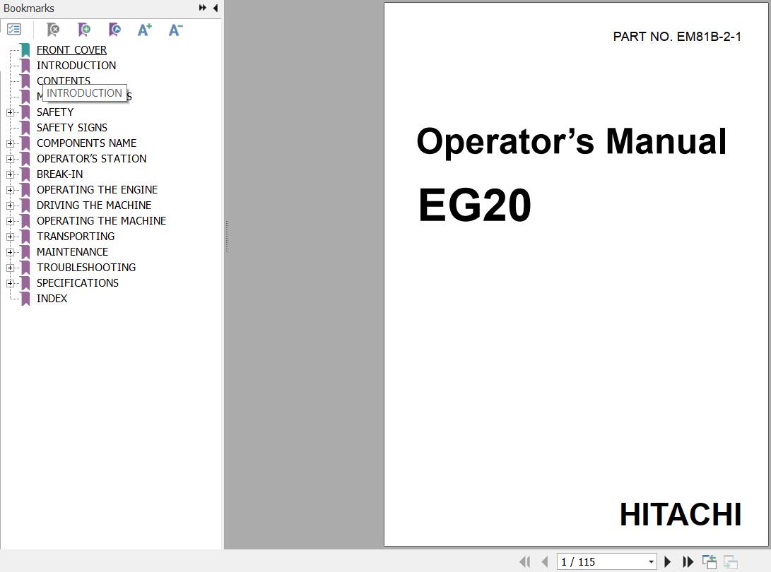The Bookmarks of Hitachi EG20 Operator's Manual: