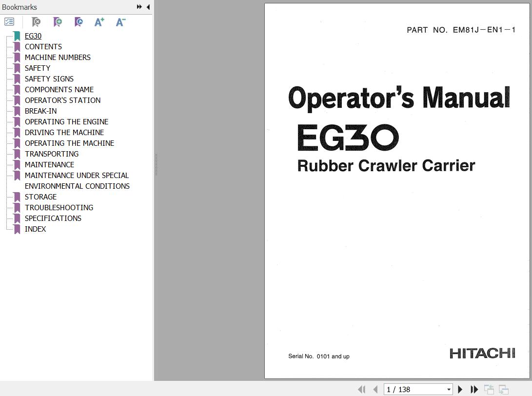 The Bookmarks of Hitachi EG30 Operator's Manual: