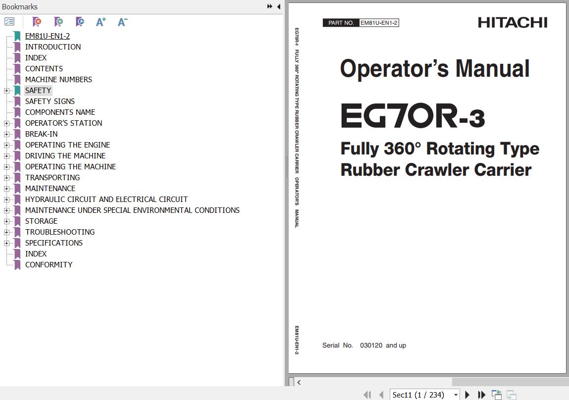 The Bookmarks of Hitachi EG70R-3 Operator's Manual: