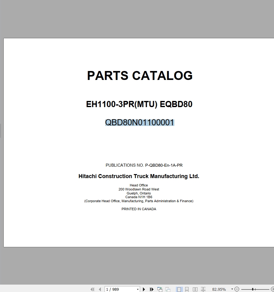 Hitachi EH1100-3PR EQBD80 Parts Catalog P-QBD80-En-1A-PR