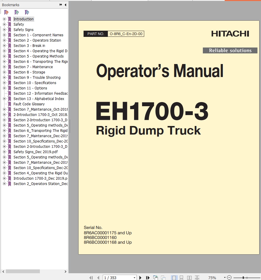 The Bookmarks of Hitachi EH1700-3 Rigid Dump Truck Operator's Manual: