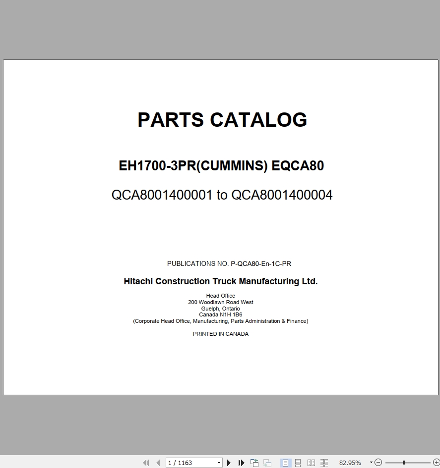 Hitachi EH1700-3PR EQCA80 Parts Catalog P-QCA80-En-1C-PR