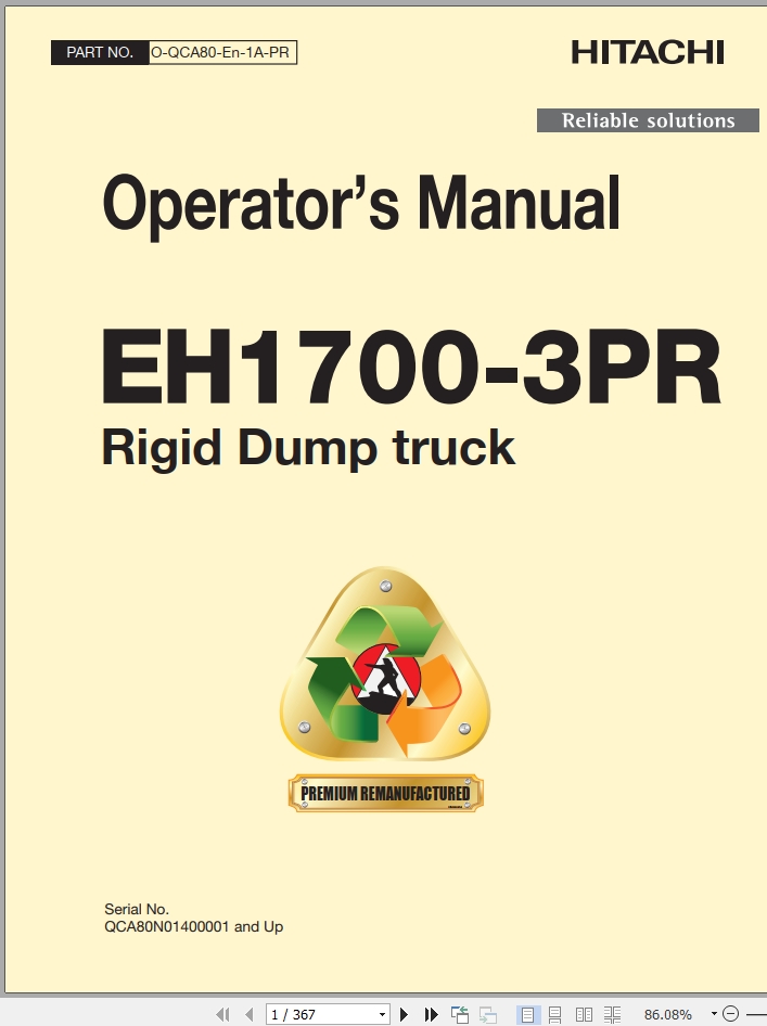 Hitachi EH1700-3PR Operator's Manual O-QCA80-En-1A-PR