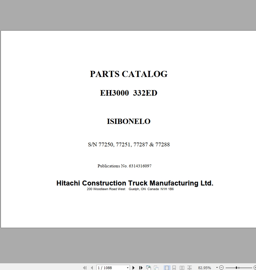 Hitachi EH3000 332ED Parts Catalog 6314316097