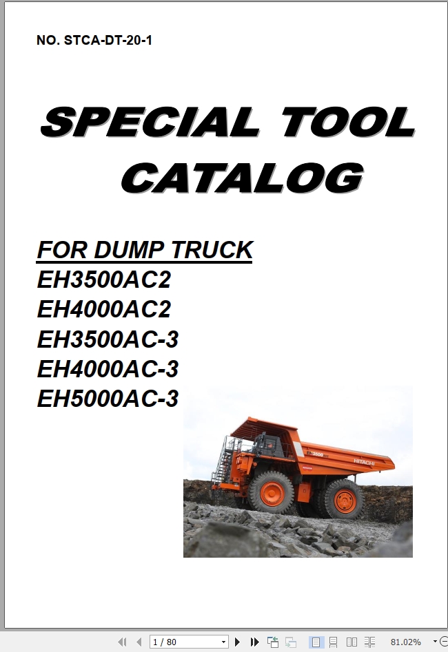 Hitachi EH3500AC-2 EH4000AC-2 3500AC-3 4000AC-3 EH5000AC-3 Special Tool Catalog STCA-DT-20-1