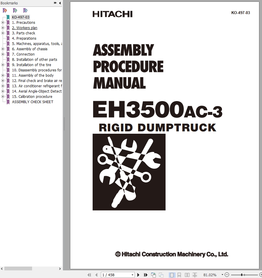 The Bookmarks of Hitachi EH3500AC-3 Rigid Dump Truck Assembly Procedure Manual: