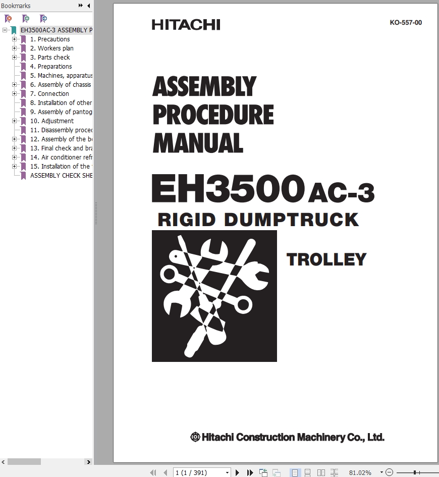 The Bookmarks of Hitachi EH3500AC-3 Rigid Dump Truck Workshop Manual: