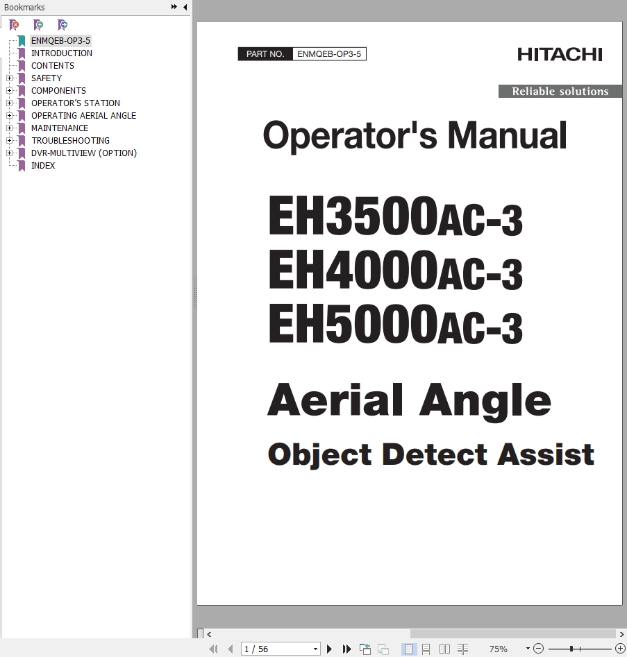 The Bookmarks of Hitachi EH3500AC-3 EH4000AC-3 EH5000AC-3 Rigid Dump Truck Operator's Manual: