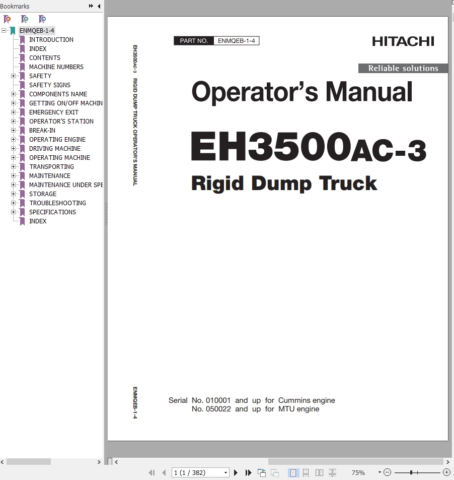 The Bookmarks of Hitachi EH3500AC-3 Rigid Dump Truck Operator's Manual: