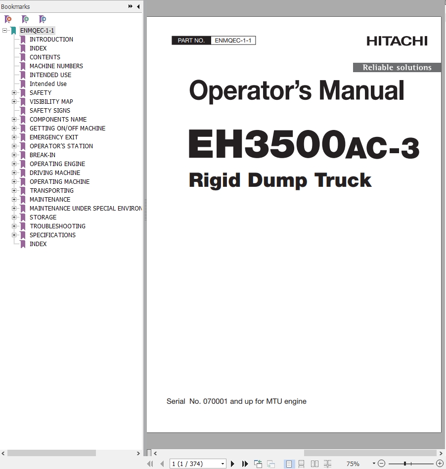 The Bookmarks of Hitachi EH3500AC-3 Rigid Dump Truck Operator's Manual: