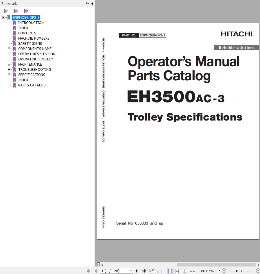 Hitachi EH3500AC-3 Operator's Manual Parts Catalog ENPMQEB-OP2-1