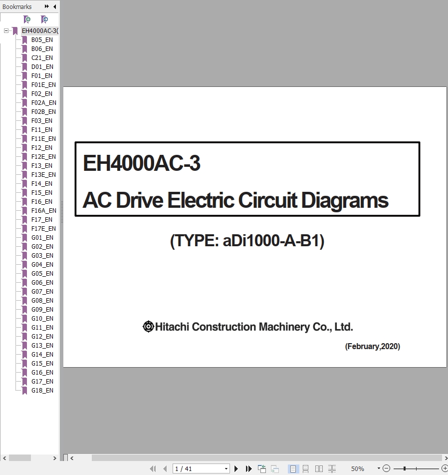 The Bookmarks of Hitachi EH4000AC-3 Rigid Dump Truck Electric Circuit Diagrams: