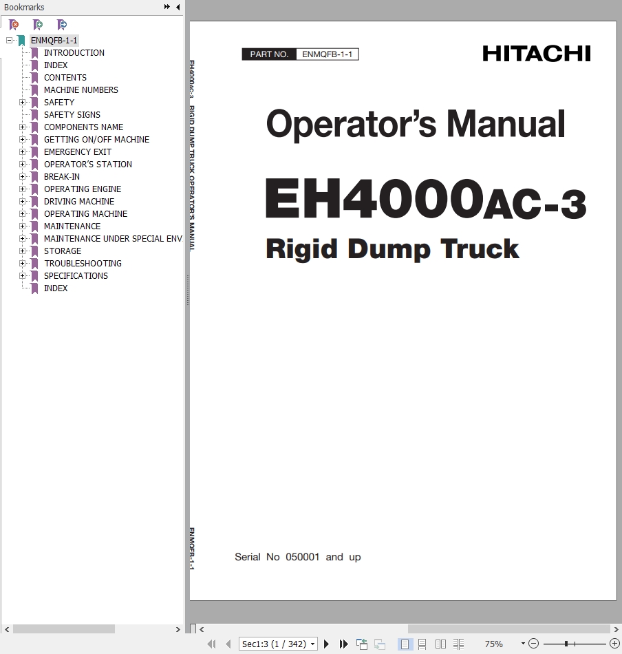 The Bookmarks of Hitachi EH4000AC-3 Rigid Dump Truck Operator's Manual: