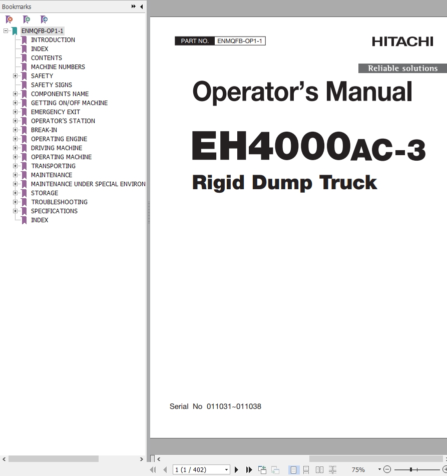 The Bookmarks of Hitachi EH4000AC-3 Rigid Dump Truck Operator's Manual: