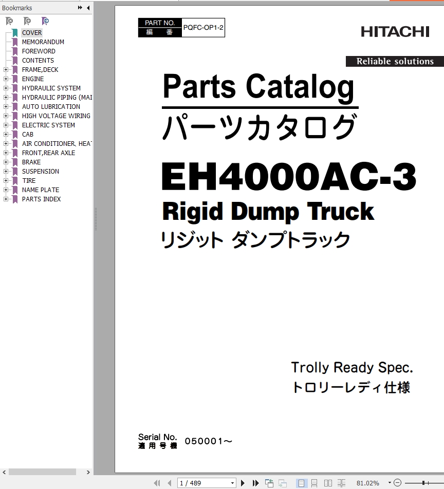 The Bookmarks of Hitachi EH4000AC-3 Rigid Dump Truck Parts Catalog: