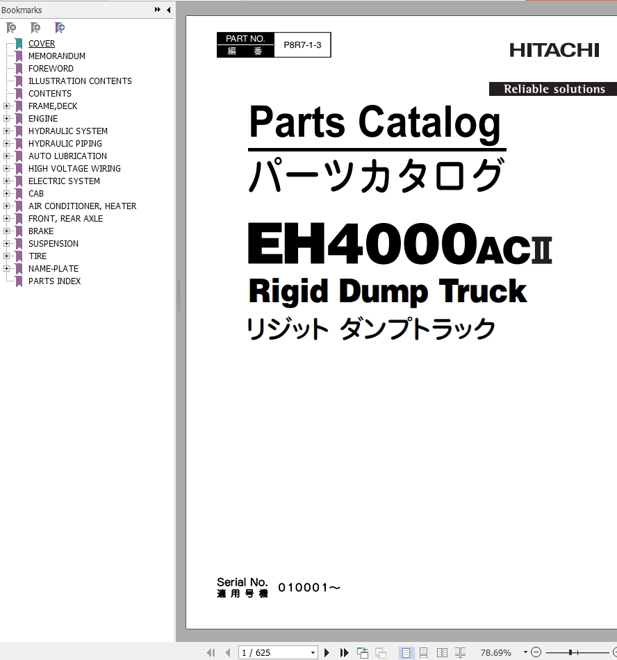 The Bookmarks of Hitachi EH4000ACII Rigid Dump Truck Parts Catalog: