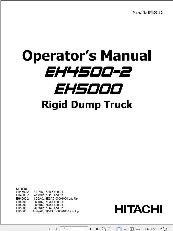 Hitachi EH4500-2 EH5000 Operator's Manual EM8D9-1-2