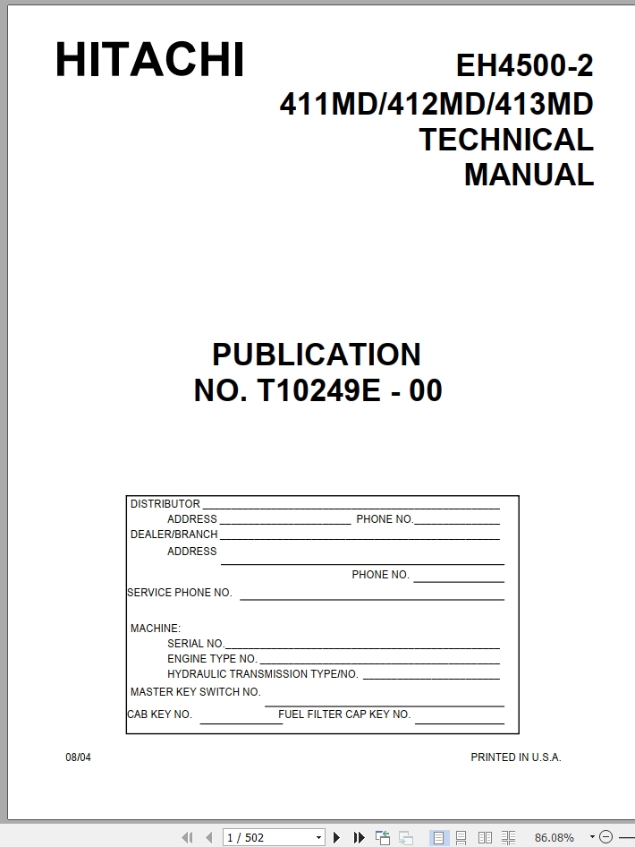 Hitachi EH4500-2 Technical Manual T10249E-00