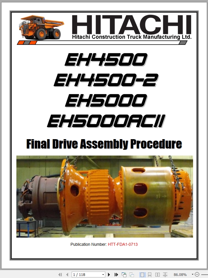 Hitachi EH4500 EH4500-2 EH5000 EH5000ACII Final Drive Assembly Proceduce HTT-FDA1-0713