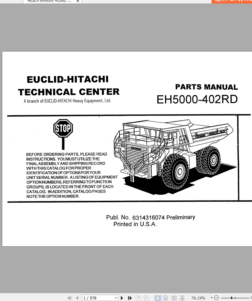 Hitachi EH5000 402RD Parts Manual 6314316074