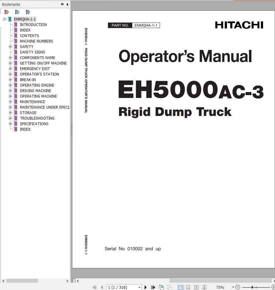 The Bookmarks of Hitachi EH5000AC-3 Rigid Dump Truck Operator's Manual: