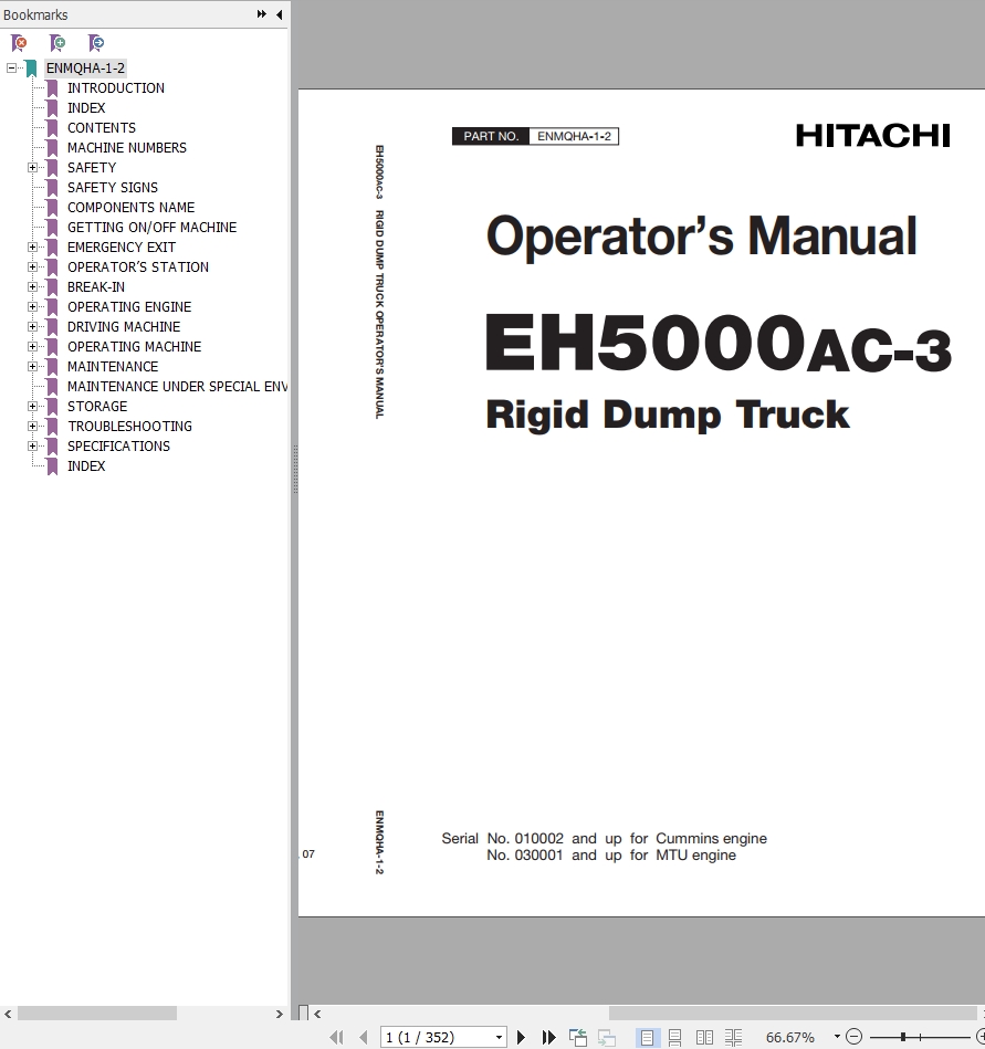 The Bookmarks of Hitachi EH5000AC-3 Rigid Dump Truck Operator's Manual: