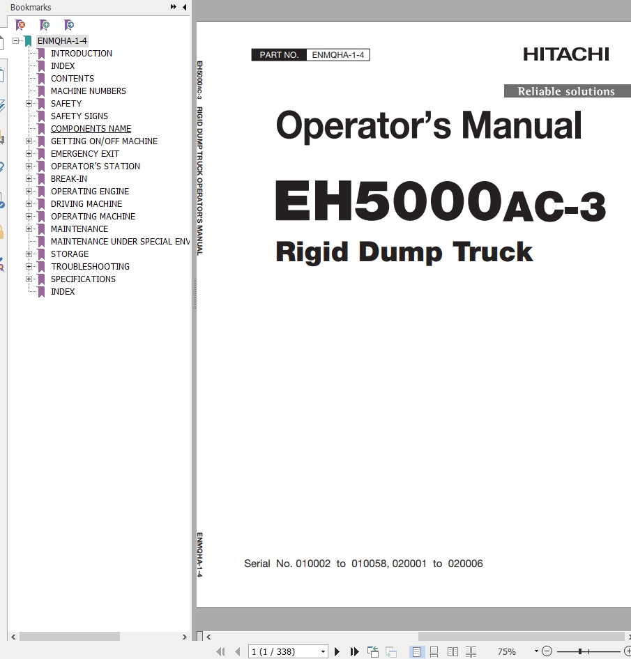 The Bookmarks of Hitachi EH5000AC-3 Rigid Dump Truck Operator's Manual: