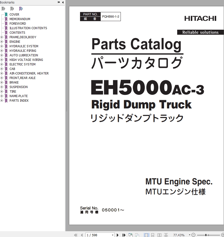 The Bookmarks of Hitachi EH5000AC-3 Rigid Dump Truck Parts Catalog: