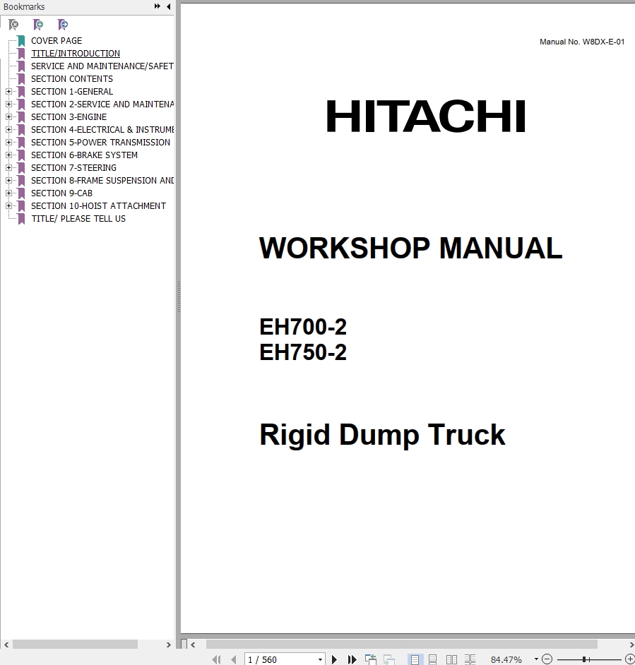The Bookmarks of Hitachi EH700-2 EH750-2 Rigid Dump Truck Workshop Manual: