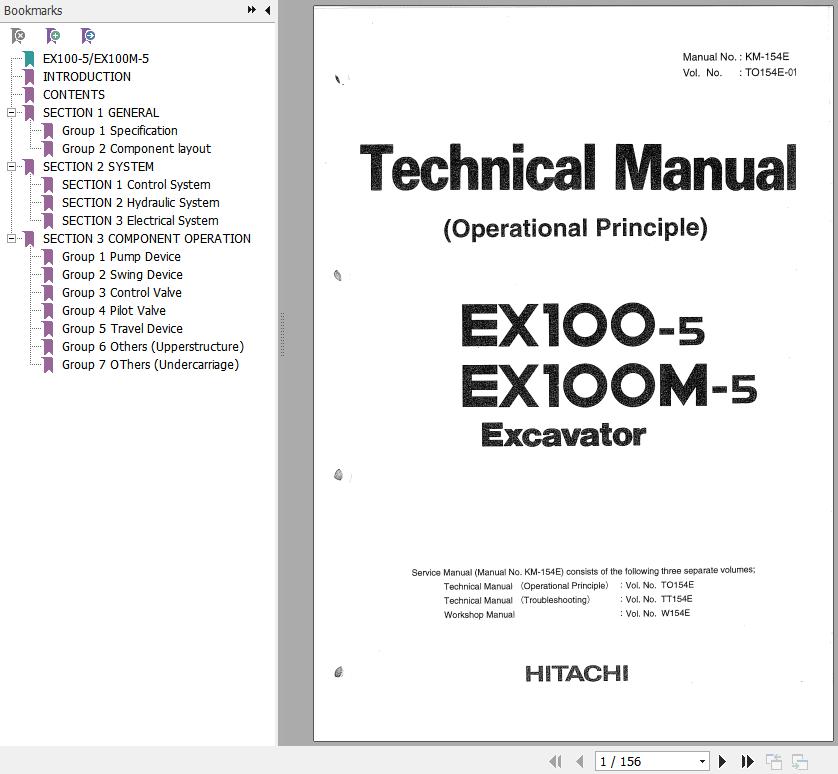Hitachi EX100-5 EX100M-5 Technical Manual Operational Principle TO154E-01