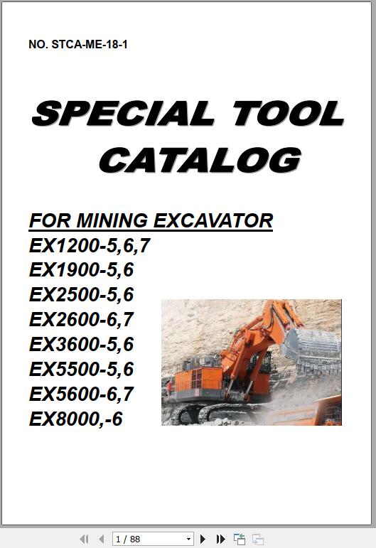 Hitachi EX1200-5 To EX8000-6 Specical Tool Catalog For Mining Excavator STCA-ME-18-1