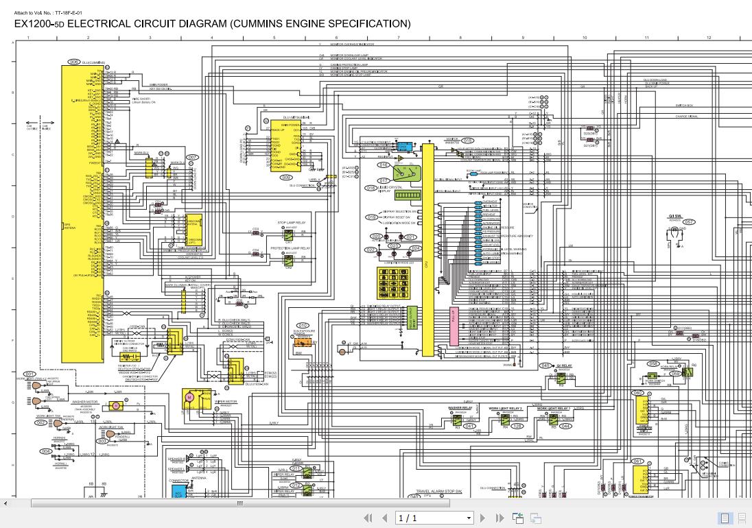 Hitachi EX1200-5D Electrical Circuit Diagram Cummins Engine Specification (WCLA-0656-EX) TT18F-E-01 1 Pages