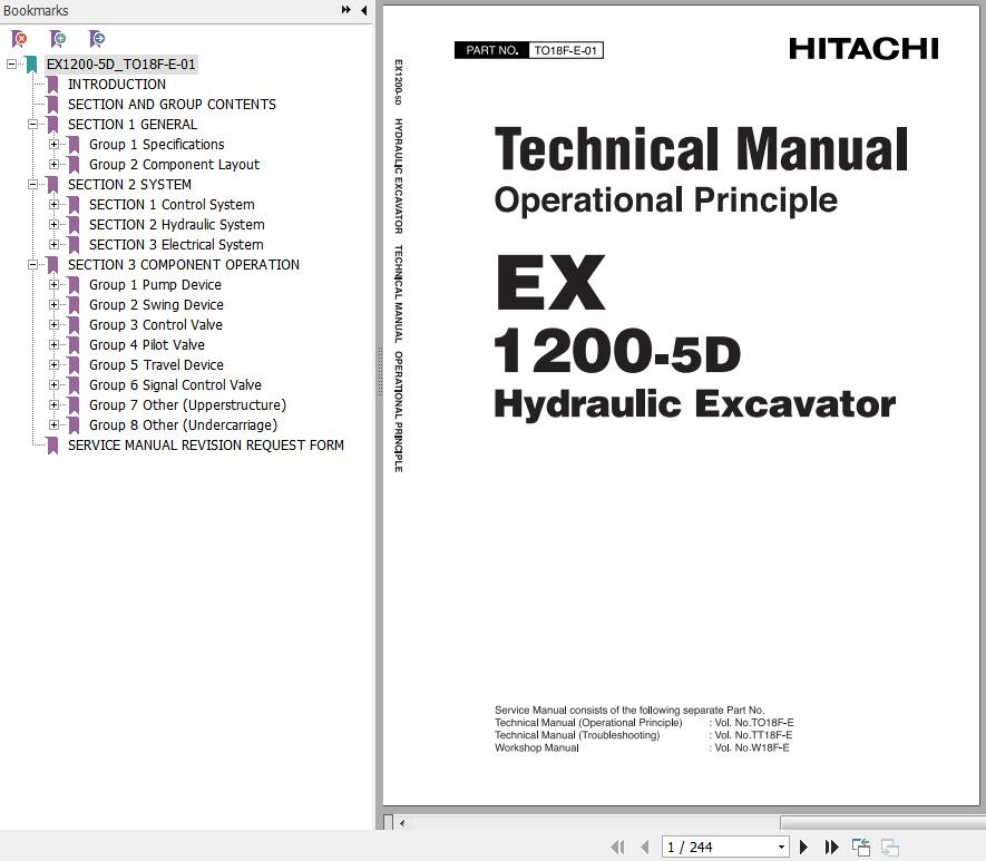 The Bookmarks of Hitachi EX1200-5D Hydraulic Excavator Technical Manual Operational Principle: