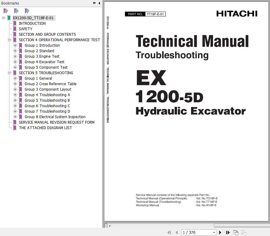 Hitachi EX1200-5D Technical Manual Troubleshooting TT18F-E-01 370 Pages