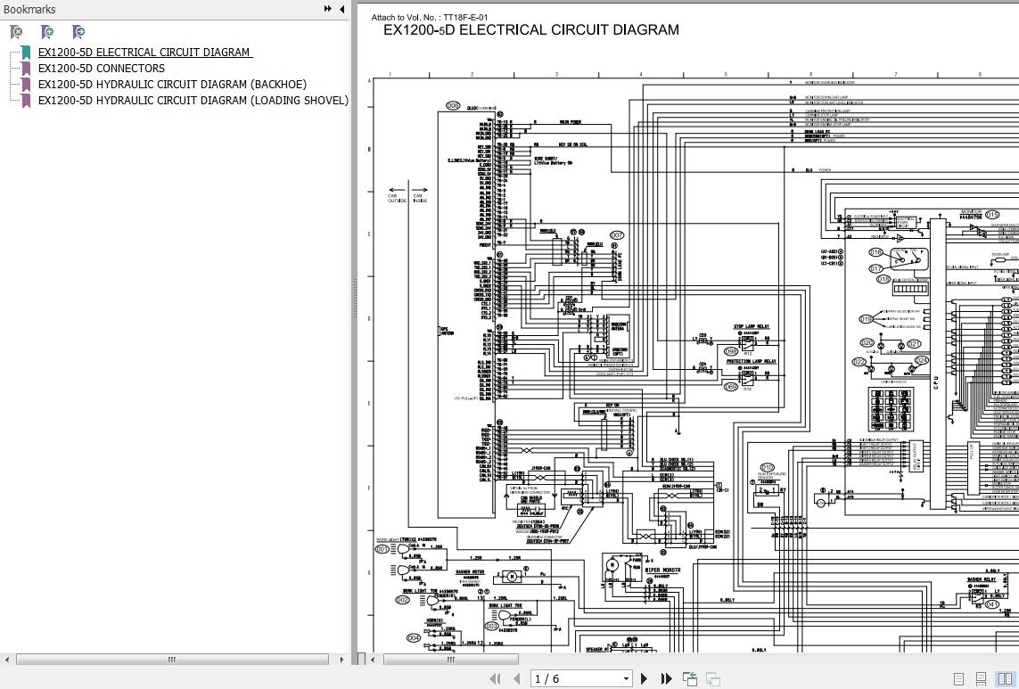 Hitachi EX1200-5D Electrical & Hydraulic Circuit Diagram TT18F-E-01 6 Pages