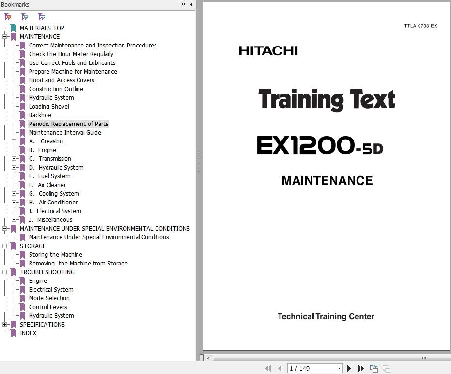 The Bookmarks of Hitachi EX1200-5D Hydraulic Excavator Training Text Maintenance: