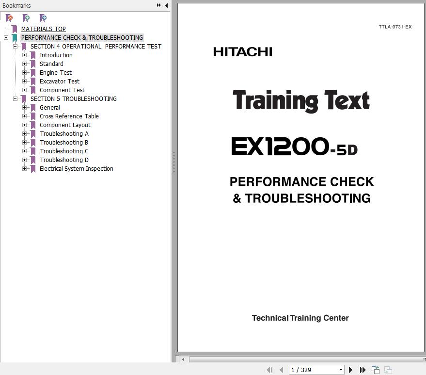 The Bookmarks of Hitachi EX1200-5D Hydraulic Excavator Training Text Performance Check & Troubleshooting:
