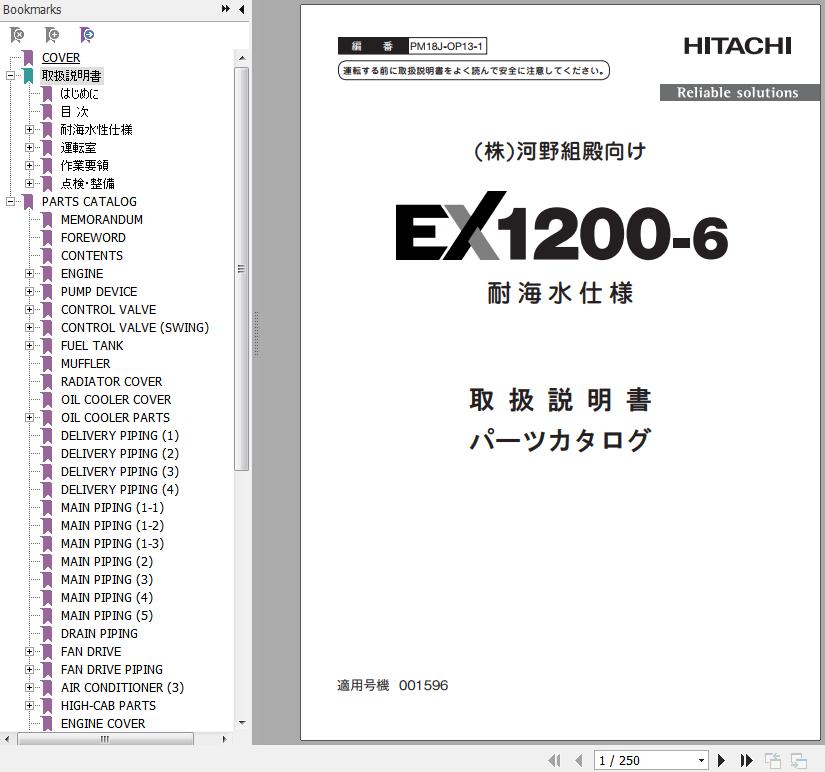 Hitachi EX1200-6 Parts Catalog PM18J-OP13-1 EN JP 250 Pages