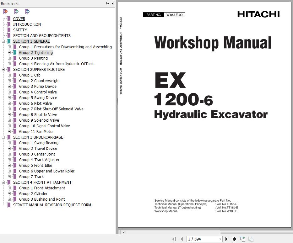 Hitachi EX1200-6 Workshop Manual W18J-E-00(20210428) 594 pages