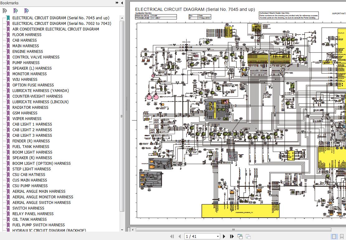 Hitachi EX1200-7 Electrical & Hydraulic Circuit Daigram TTKAA90-EN-01 41 Pages