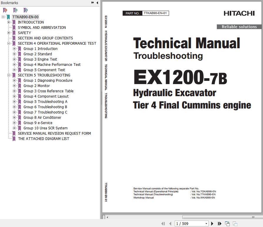 Hitachi EX1200-7B T4F Cummins Technical TTKAB90-EN-01(20210118) 509 Pages
